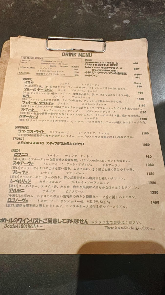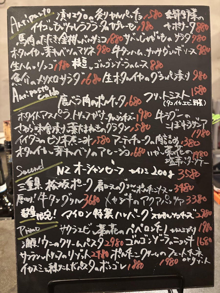 Seafood lovers will appreciate the delicate カルパッチョ, featuring fresh slices of fish, while the オレンジワイン offers a refreshing and slightly tangy wine pairing that complements the meal. For a more substantial side, the ポテトサラダ provides a creamy, savory addition to the table.